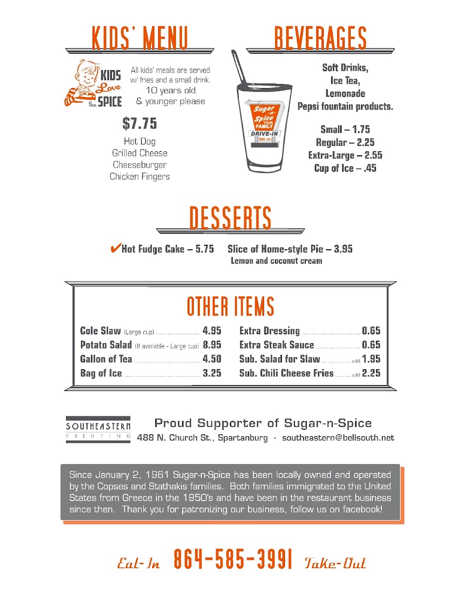 Welcome to Sugar-n-Spice, a cherished gem located at 212 S Pine St, Spartanburg, SC. This classic drive-in has been delighting customers for years with its mouthwatering menu and warm atmosphere. Guests rave about the delectable from-scratch onion rings and the perfectly cooked burgers, a testament to their commitment to fresh, quality ingredients.